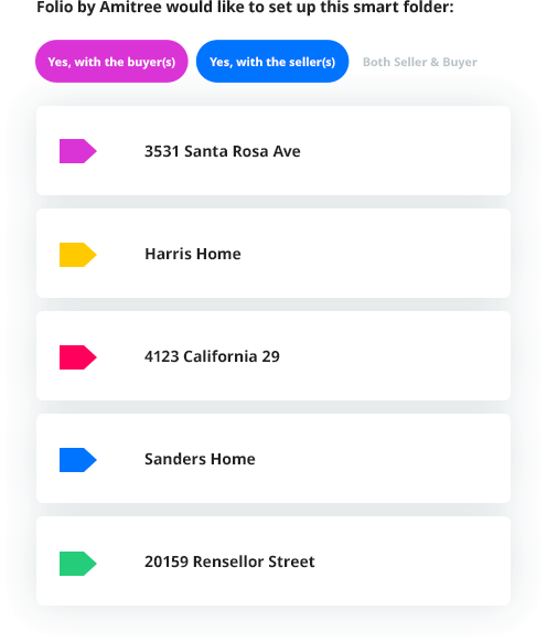 Folio is the first smart email assistant for busy professionals. Once you connect your inbox, it gets to work organizing your emails and related documents, attachments, and contacts. Never search for ‘that document’ again. Everything you need for your business is right there at your fingertips and is designed especially for professionals who manage complex processes like real estate transactions.